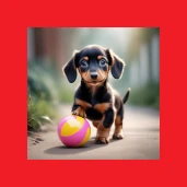 Tacskó kölyök labdával