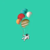 Űrhajós lufi bolygókkal