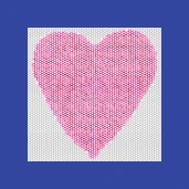 Szív alakzata pointillista stílusban, finom, különálló atomi pontokból. A rácsszerkezet levegős és könnyed, mintha egy gázhalmazállapotú molekulafelhőt örökítettünk volna meg. Vasarely optikai játéka itt a legtisztább.