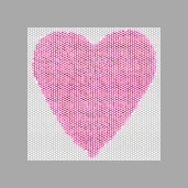 Szív alakzata pointillista stílusban, finom, különálló atomi pontokból. A rácsszerkezet levegős és könnyed, mintha egy gázhalmazállapotú molekulafelhőt örökítettünk volna meg. Vasarely optikai játéka itt a legtisztább.